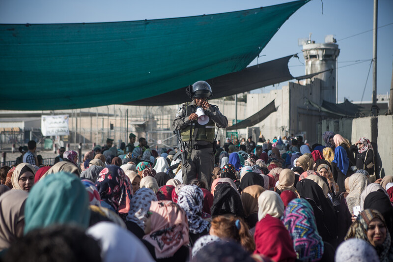 Palestinians cross the Qalandiya checkpoint near the West Bank city of Ramallah on their way to pray at al-Aqsa mosque in Jerusalem on the third Friday of the month of Ramadan, 3 July.