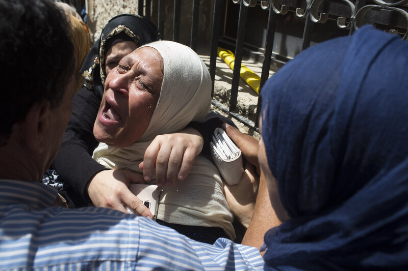 The aunt of Mohammad Abu Latifa reacts during the youth’s funeral in Qalandiya refugee camp near the West Bank city of Ramallah on 27 July. The teen’s family say Abu Latifa was shot and killed by the Israeli military, which claimed that he died after falling from a rooftop.