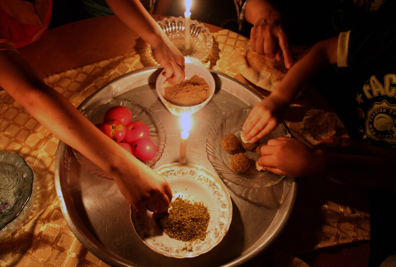 A Palestinian family dines by candlelight during a power cut in Rafah, southern Gaza Strip, on 28 July. Many Gaza households had only a few hours of electricity per day last month.