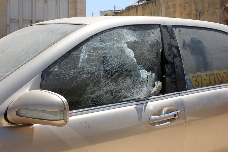 A Palestinian car was reportedly vandalized by the Israeli army during a night raid on 26 June in the West Bank village of Kafr Qalil, photographed on 30 June. The Israeli army arrested three Palestinians and seized personal documents and licenses during the raid.