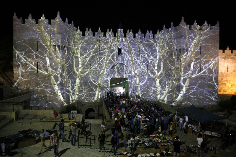 The Old City of Jerusalem’s Damascus Gate is illuminated during the Jerusalem Festival of Lights on 8 June. The Al-Aqsa Foundation for Endowment and Heritage warned that the festival is part of Israel’s plans to Judaize the city at the expense of Palestinian rights.