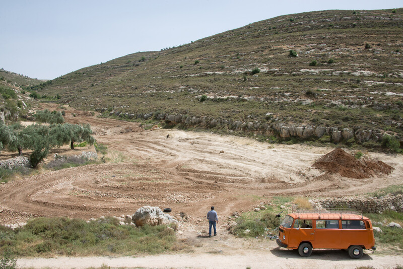 Daoud Nassar inspects the destruction at the site of his family’s former grove of 1,500 fruit trees near the West Bank village of Nahalin, 3 June. On 19 May, Israeli forces bulldozed the family’s groves, which contained mature apricot, apple, grape, almond and fig trees planted ten years ago.