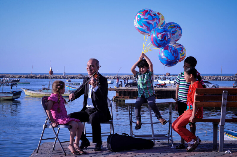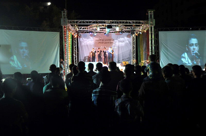 Palestinians attend a Gaza City concert organized in solidarity with Palestinian prisoners on hunger strike in Israeli jails, 12 June.