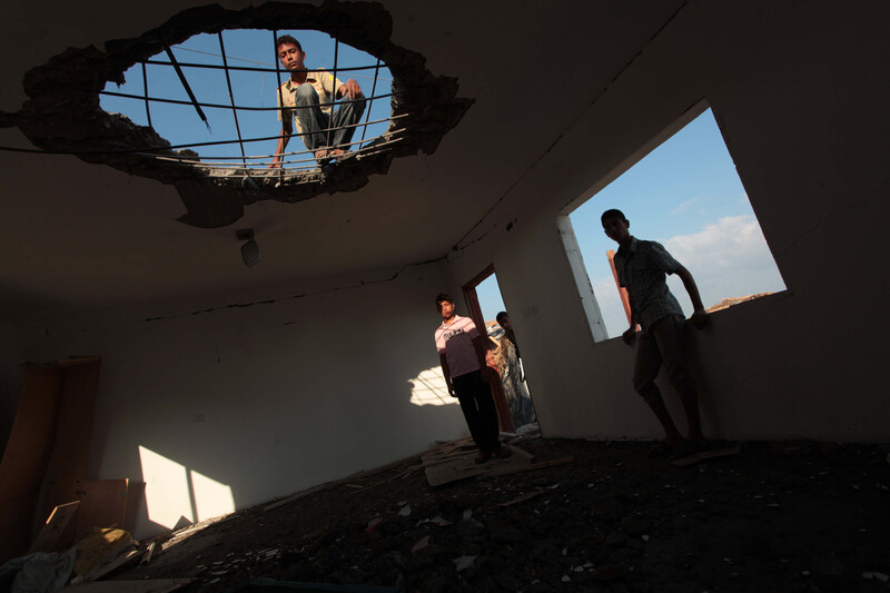 A Palestinian man inspects his Gaza City house which witnesses said was damaged in an Israeli air strike, 16 June.