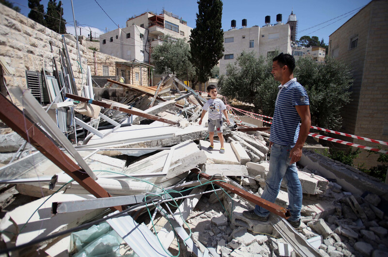 Palestinians inspect their belongings after Israeli forces demolished their sheds in the al-Tur neighborhood of eastern occupied Jerusalem, 2 June.