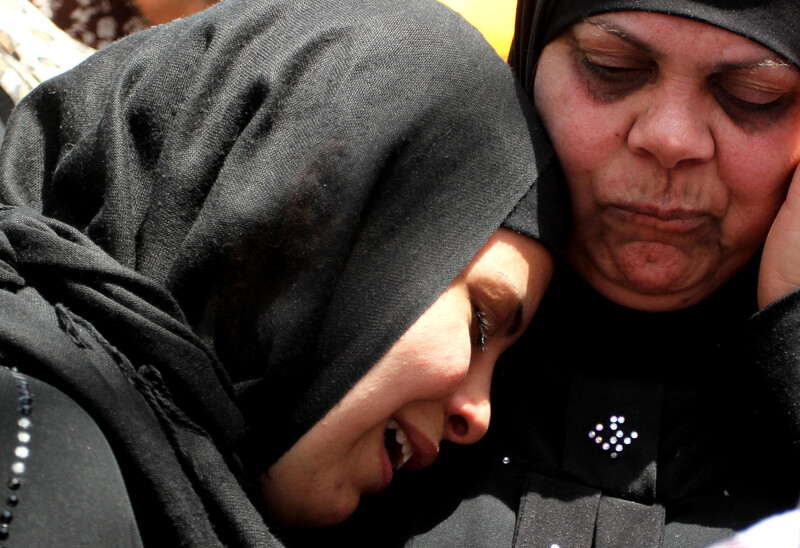 The mother and sister of Ahmad Sabarin from Jalazone refugee camp mourn during his funeral near the West Bank city of Ramallah, 16 June. Sabarin was killed by Israeli soldiers who invaded the refugee camp on the outskirts Ramallah during a confrontation with protesters.