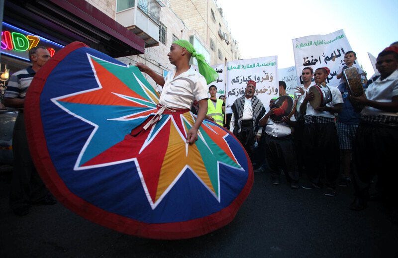 Members of a Sufi group perform outside the Old City of Jerusalem on 26 June as Muslims prepare for Ramadan.
