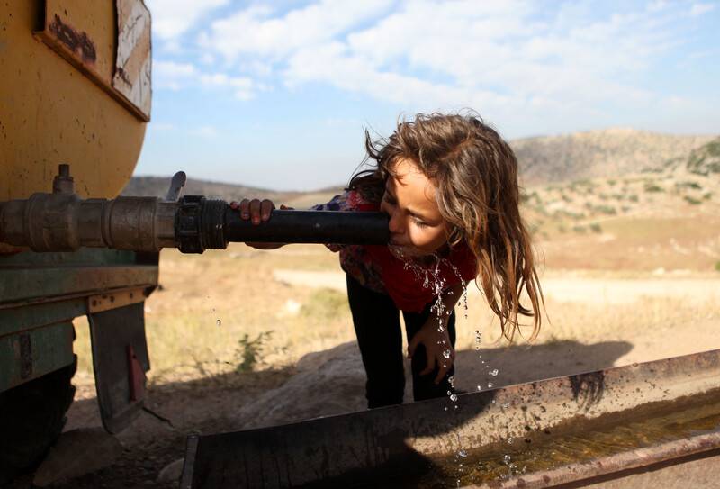 A Palestinian Bedouin girl drinks from a water tank outside her family’s tent near the West Bank town of Tubas in the Jordan Valley on 6 May. Besieged Palestinian communities in the Jordan Valley have called on the international community to immediately intervene to halt Israeli military exercises in the area.