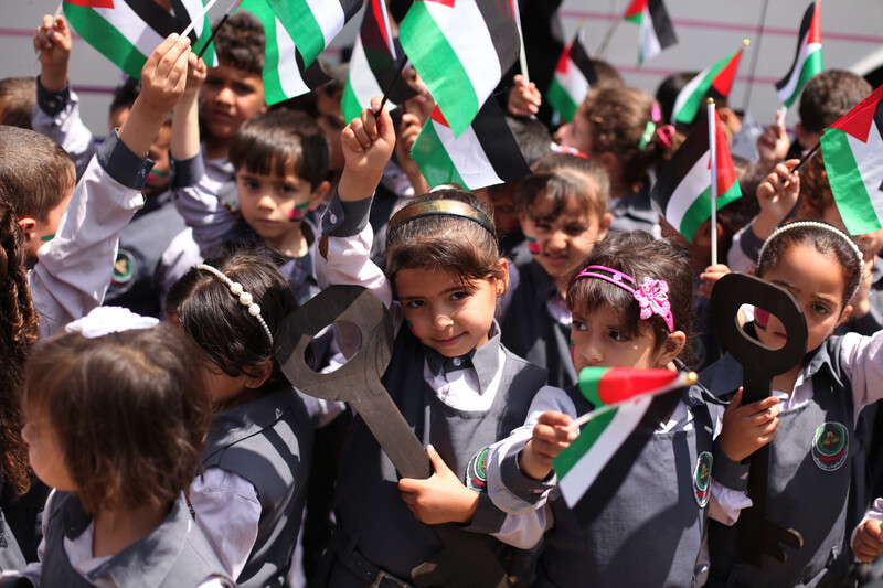 Palestinian children take part in a march ahead of commemorations of the 67th anniversary of the Nakba, the ethnic cleansing of Palestine by Zionist forces, in Gaza City on 13 May.