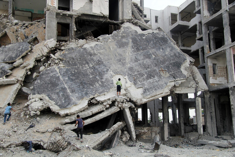 Destroyed homes in the Shujaiya district of Gaza City on 20 May. At least 100,000 Palestinians are still living without adequate shelter more than nine months after the end of Israel’s attack on the Gaza Strip last summer.