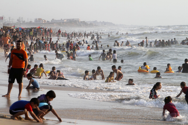 Palestinians enjoy a day at the beach in Gaza City on 29 May.