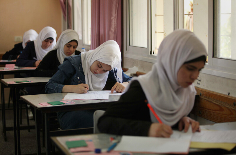 Palestinian students sit for their final high school tawjihi exams in Gaza City on 30 May. Nearly 81,000 Palestinian students sat for the first session of their high school exams across the West Bank and the Gaza Strip.