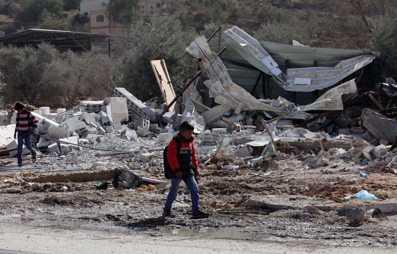 APA imagesPalestinians inspect the rubble of shelters demolished after Israeli authorities said they were built without a permit in the village of Beita, south of the West Bank city of Nablus, on 3 November. Israel routinely denies Palestinians building permits and then destroys structures built without permission.