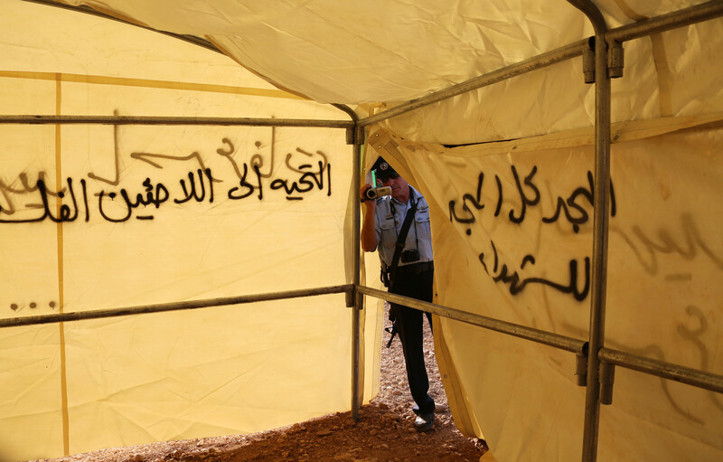 APA imagesAn Israeli officer records Palestinian and Israeli activists building a tent near the West Bank city of Tubas during a demonstration against the construction of Jewish settlements in the Jordan Valley, on 17 November. According to the Israeli human rights group B’Tselem, 97 percent of the Jordan Valley is off-limits for Palestinian use. This is almost 25 percent of the total area of the West Bank.