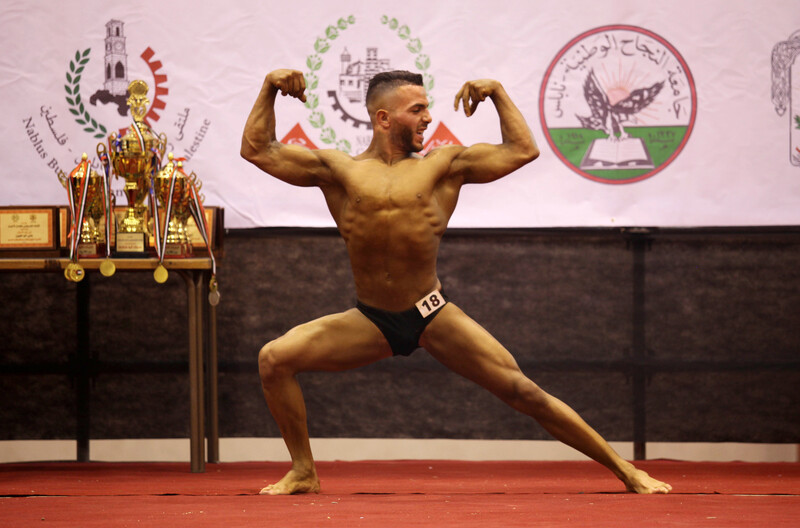 A contestant poses during a bodybuilding competition in the West Bank city of Nablus on 25 November.