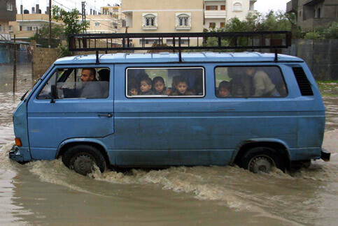 Does Israel not have obligations to these refugees too? Palestinians struggle through floodwater in the Rafah refugee camp in the south of the Gaza Strip, 27 December 2006. (MaanImages/Hatem Omar)