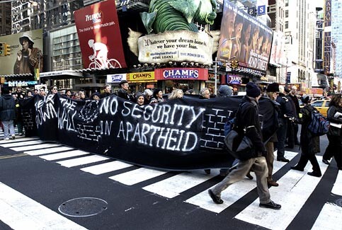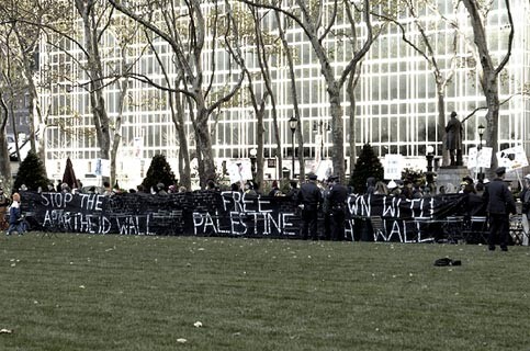 The protest was endorsed by: Palestine Action Forum of New York (PAFNY), A.W.A.R.E., NY-NJ Al nAwda, New York City Labor Against The War (NYCLAW), Arab-American Anti-Discrimination Committee-New York (ADC-NY), Direct Action Palestine (DAP), Stop U.S.Tax Aid to Israel NOW-NY (SUSTAIN-NY), Jews Against The Occupation, New York (JATO-NYC). For more information about the protest, contact (917) 562-3358. For more information about Israelis construction of the Apartheid Wall, visit: www.stopthewall.org.