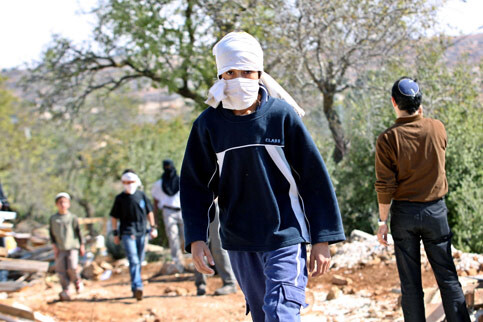 As the photographers approached the settlers, the latter suddenly began to throw stones at them. My vantage point was close by. Rocks started crashing around me, breaking branches and slamming into the earth. I quickly returned to the Dana house, where I again narrowly avoided being hit by rocks thrown by the youths. A little while later, the Palestinian photographer was taken to hospital and the settlers went away.