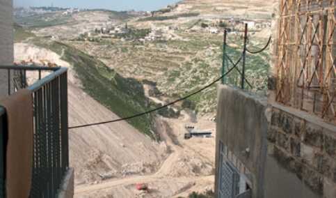 View from Sheikh Sa’ed of construction of the separation barrier (Photo: Nidal Kana’ane/B’Tselem, February 2004 )