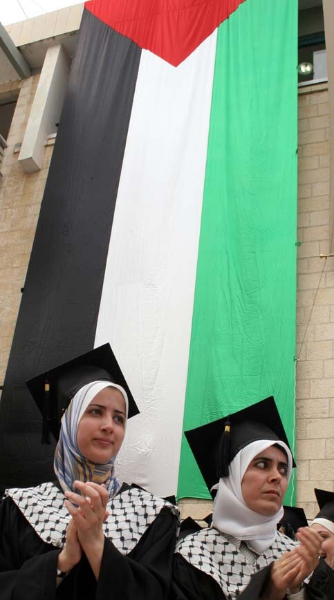Palestinian students celebrate their graduation from the Al-Najah University in the West Bank city of Nablus June 17, 2006. (MaanImages/Rami Swidan)