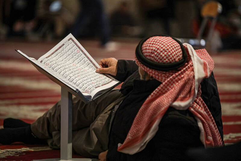 A man reads the Quran in the al-Aqsa mosque during the last 10 days of Ramadan, during which Muslims observe Laylat al-Qadr, 11 April.