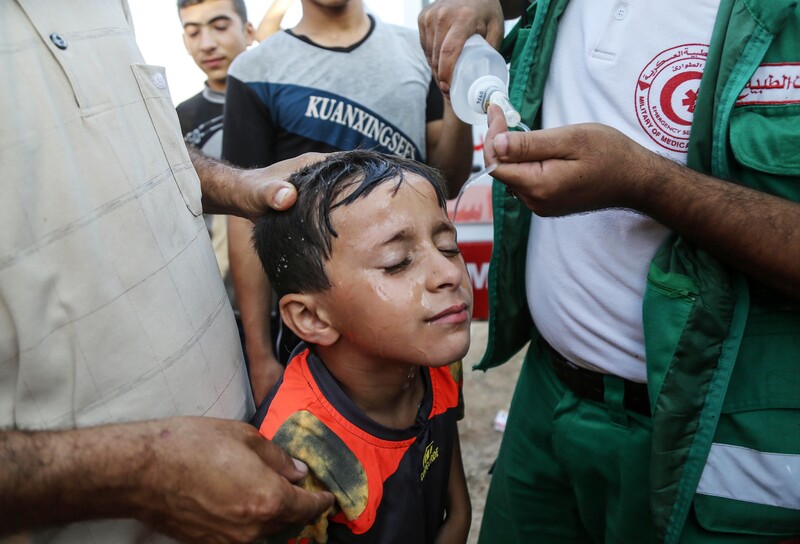 A Palestinian child receives medical treatment during Great March of Return protests east of Gaza City on 10 August.