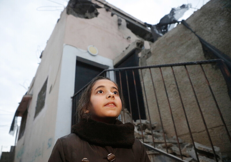 Mayar Jaradat, daughter of Palestinian prisoner Mahmoud Jaradat, looks at the remains of her home after it was punitively demolished by Israeli forces in the village of Silat al-Harithiya near the West Bank city of Jenin on 14 February. A Palestinian was killed and 20 others were injured by Israeli gunfire during a major raid into the village after midnight.