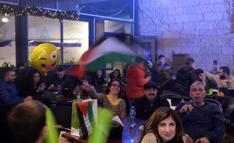 Palestinians in the West Bank city of Ramallah watch the 2019 AFC Asian Cup Group B football match between Palestine and Syria on 6 January. The match ended in a 0-0 draw.