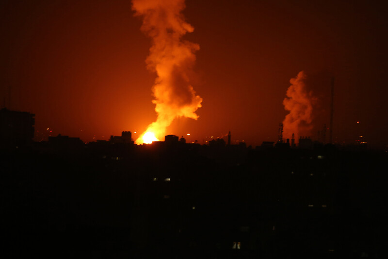 An explosion is seen during an Israeli airstrike in Beit Lahia, northern Gaza Strip, on 22 January. An Israeli tank fired into Gaza, killing a Hamas fighter, in what the army said was retaliation for the wounding of a soldier by fire from Gaza.