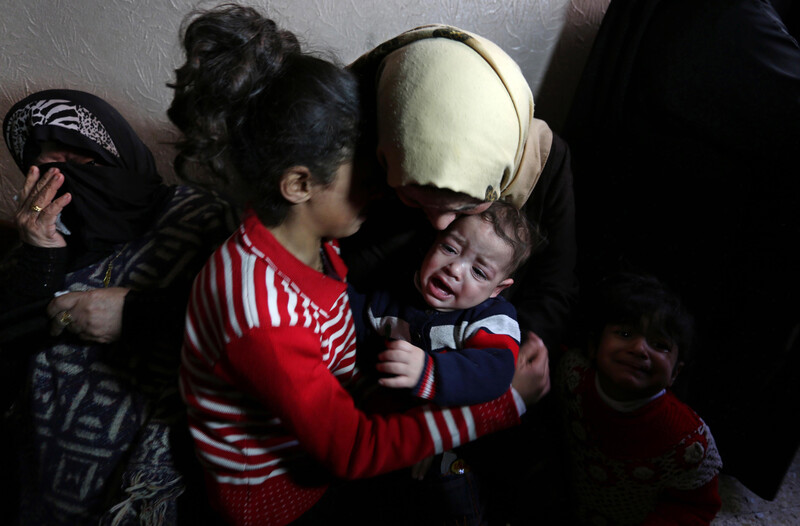 Relatives of Ihab Abed, 24, shot with a live bullet to the chest by Israeli troops during Great March of Return protests, mourn during his funeral in Rafah, southern Gaza Strip, on 26 January.