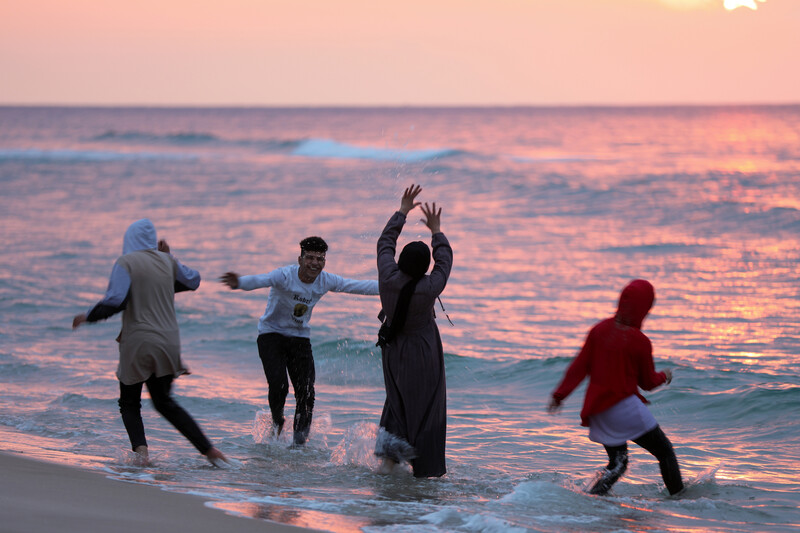 Palestinians enjoy their time at the Gaza beach during sunset on 4 January.