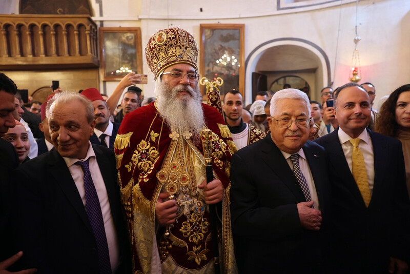 Palestinian Authority leader Mahmoud Abbas takes part in midnight mass for Eastern Orthodox Christmas in the West Bank city of Bethlehem, 6 January.