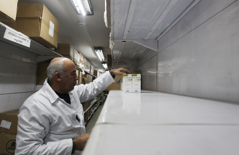 A Palestinian pharmacist stands next to empty shelves at a medicine warehouse in Gaza City on 8 January. The director of the pharmacy department at Gaza’s health ministry said that the main reason for the unavailability of medicines is the government’s difficult financial situation.