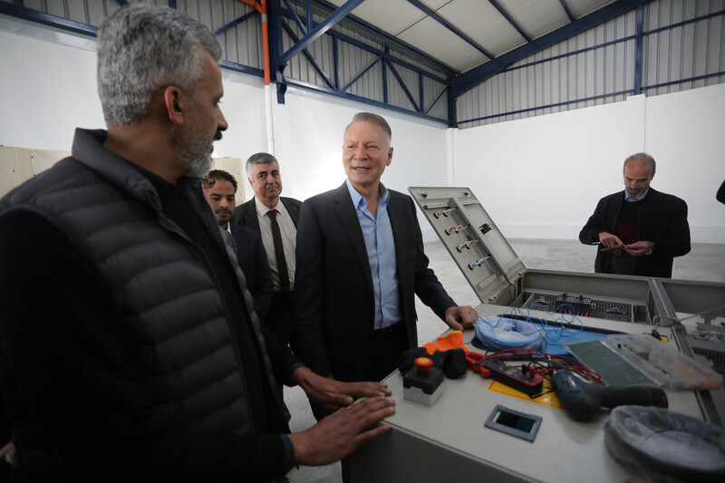 Bashar Masri, chair of the Palestine Development and Investment Company (PADICO), inspects factories that were recently reopened after being damaged during Israel’s May 2021 offensive, in the industrial zone east of Gaza City on 17 January.