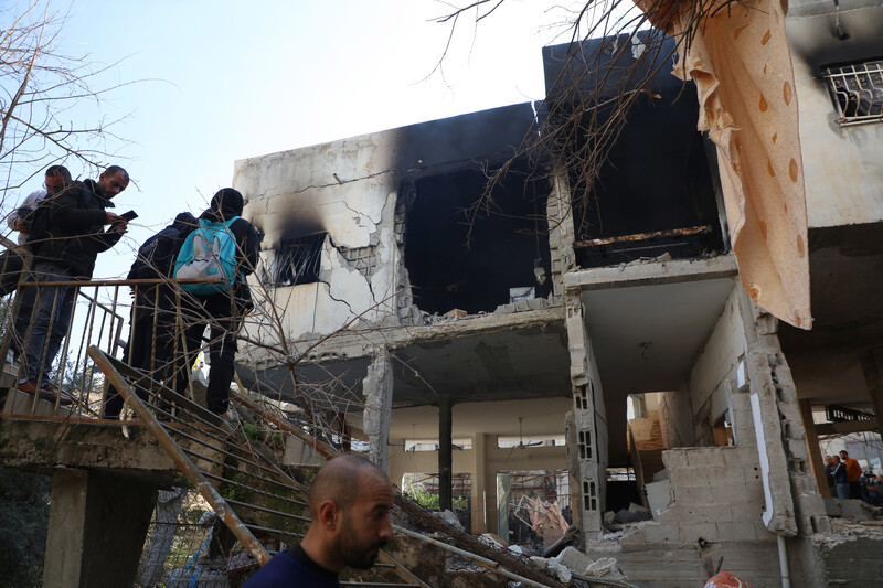 Palestinians inspect a house that was besieged by Israeli forces during a raid that left nine people dead in the West Bank city of Jenin on 26 January. A 10th person died from his injuries days later.