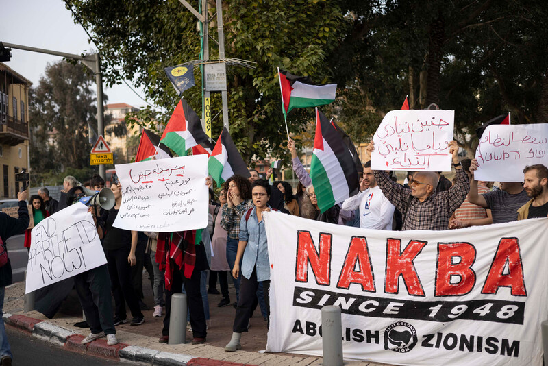 Palestinians and Israeli left-wing activists protest in Jaffa in solidarity with Jenin refugee camp following a deadly raid, 28 January.