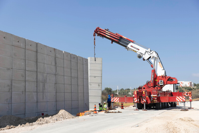 Workers place a concrete slab during the erection of a new barrier parallel to the Israel’s West Bank wall near the village of Salem on 23 June. The concrete wall will be nearly 30 miles in length in order to block holes in the barrier that Palestinians from the West Bank use to enter Israel.