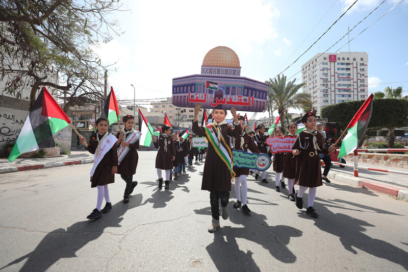 Palestinian scouts mark the 47th anniversary of Land Day in Gaza City on 29 March. Land Day commemorates Israel’s killing of six Palestinians and the injury of hundreds more during protests against land expropriation in 1976.