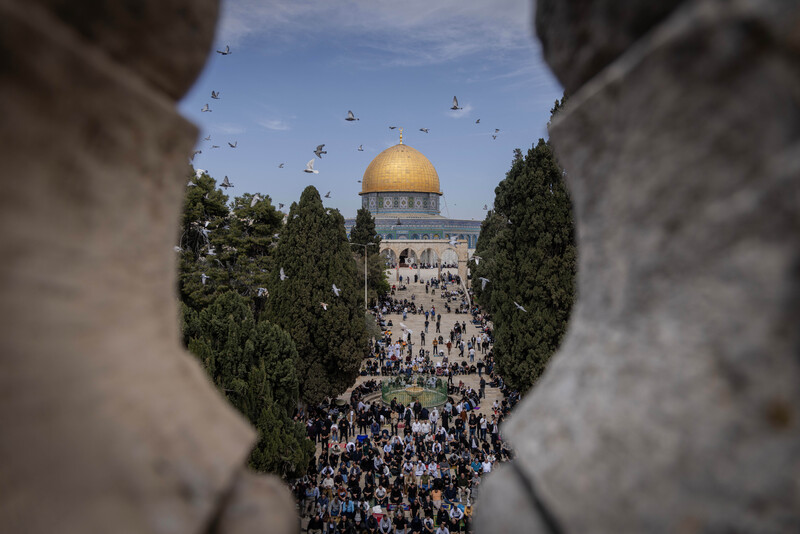 A view of the Dome of the Rock, in Jerusalem’s al-Aqsa mosque compound, during the second Friday of Ramadan, 14 March. Due to Israeli movement restrictions, the al-Aqsa mosque — one of the holiest sites in Islam — is inaccessible to the vast majority of Palestinians, including those in Gaza.