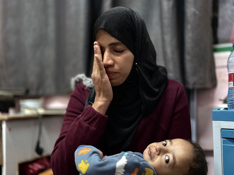 On International Mother’s Day, a woman looks after her sick child at Nasser Medical Complex in Khan Younis, 21 March.