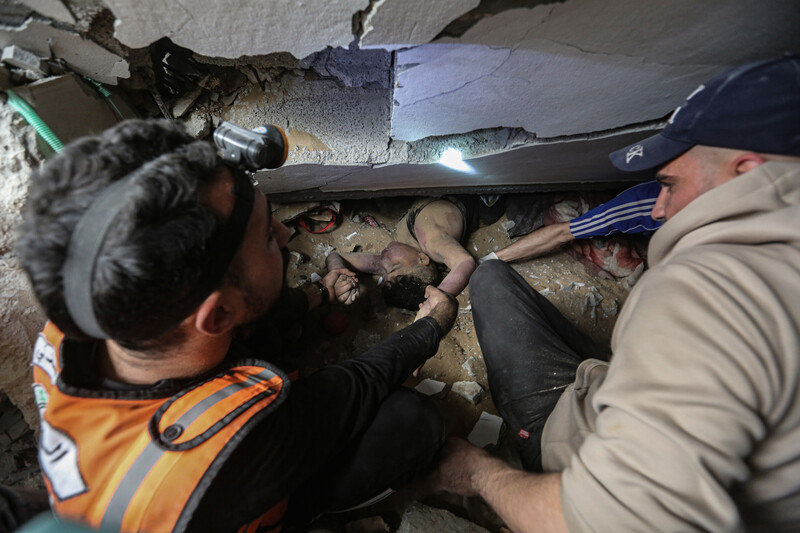 Entire families were massacred in the strikes, according to the government media office in Gaza, and at least 174 children were among the dead, according to Defense for Children International-Palestine. Ayed Abu Eqtaish, a program director with the children’s rights group, said that it marked “one of the largest one-day child death tolls in Gaza in history.”