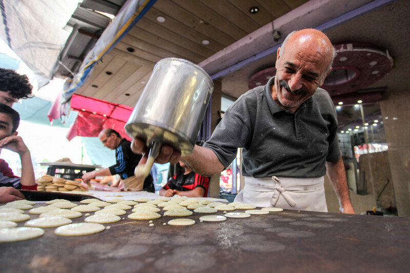 Palestinian vendors prepare qatayef, a traditional pancake that is popular during Ramadan, Gaza City, 4 May.