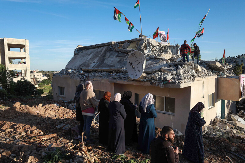 A home belonging to the family of Qassam al-Barghouthi after the top floor was destroyed by Israeli occupation forces in the West Bank village of Kobar on 11 May. Al-Barghouthi is accused of involvement in an explosion that killed an Israeli teen near the Jewish settlement of Dolev, northwest of the occupied West Bank city of Ramallah, last August.