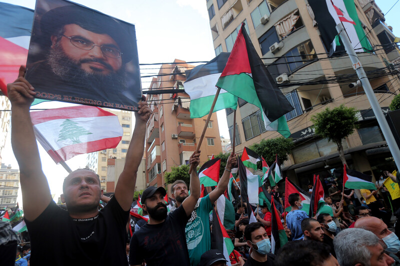 Lebanese and Palestinians rally in solidarity with the Palestinian people in the southern suburbs of Beirut on 17 May. Ziyad al-Nakhalah, the leader of Islamic Jihad, a Palesitnian resistance faction, made a rare public appearance in Beirut where he vowed that his group will keep fighting Israel, which he described as “weaker than a spider’s web.”