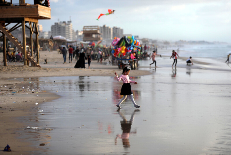 Palestinians gather at the Gaza City beach on 22 May following a ceasefire that ended 11 days of relentless Israeli airstrikes on the Gaza Strip.