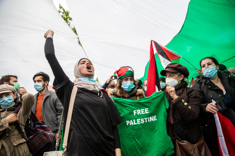 Protesters rally in solidarity with Palestinians in Berlin, Germany, on 19 May.
