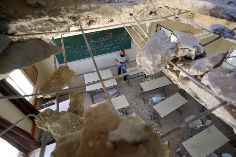 A classroom at a school hit by Israeli shelling in the Zeitoun neighborhood of Gaza City, 27 May.