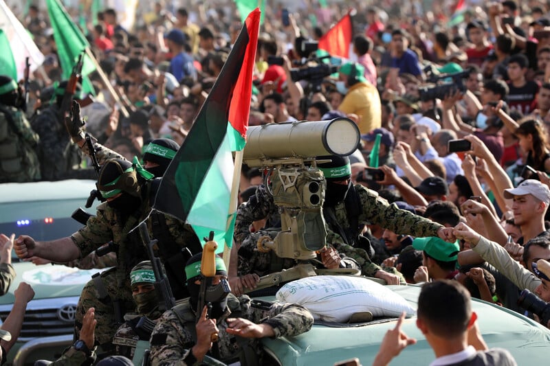 Fighters with the Quds Brigades, the armed wing of the Islamic Jihad faction, hold a military parade in Gaza City on 29 May, more than a week after a ceasefire brought an end to 11 days of hostilities between Israel and the armed resistance in Gaza.