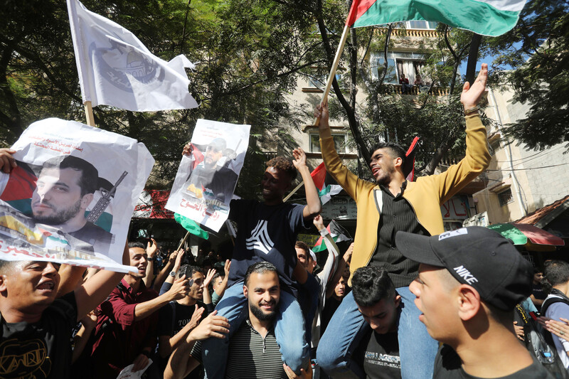 University students in Gaza City rally in support of the Lions Den, an emerging armed resistance group based in the Old City of Nablus in the West Bank, on 1 November. The group has claimed a series of recent attacks including the killing of an Israeli soldier in Shavei Shomron settlement in October.