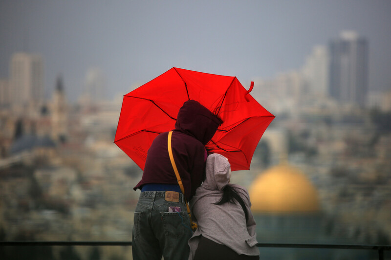 Palestinians look out toward the Dome of the Rock mosque and its surroundings in Jerusalem’s Old City on 9 November.